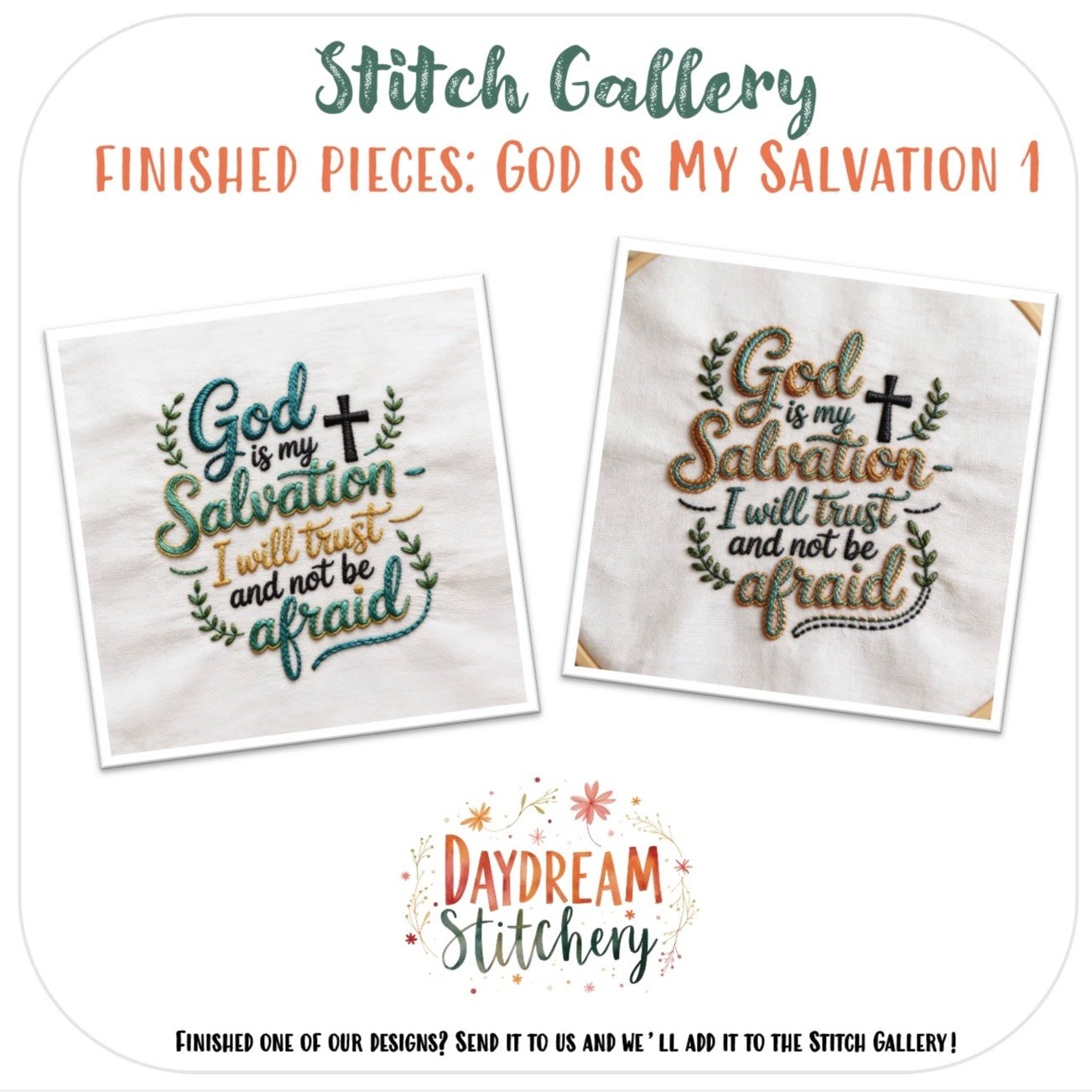 ‘God is my salvation’ Hand Embroidery Pattern: Digital PDF Download