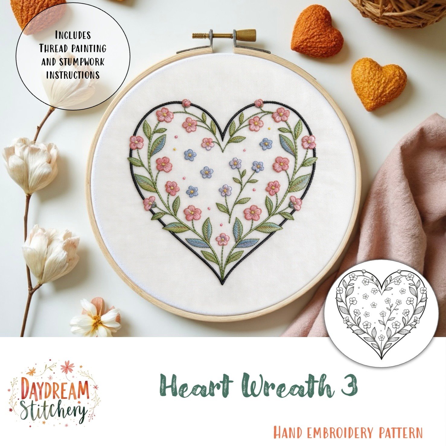 ‘Heart Wreath’ Hand Embroidery Pattern: Digital PDF Download