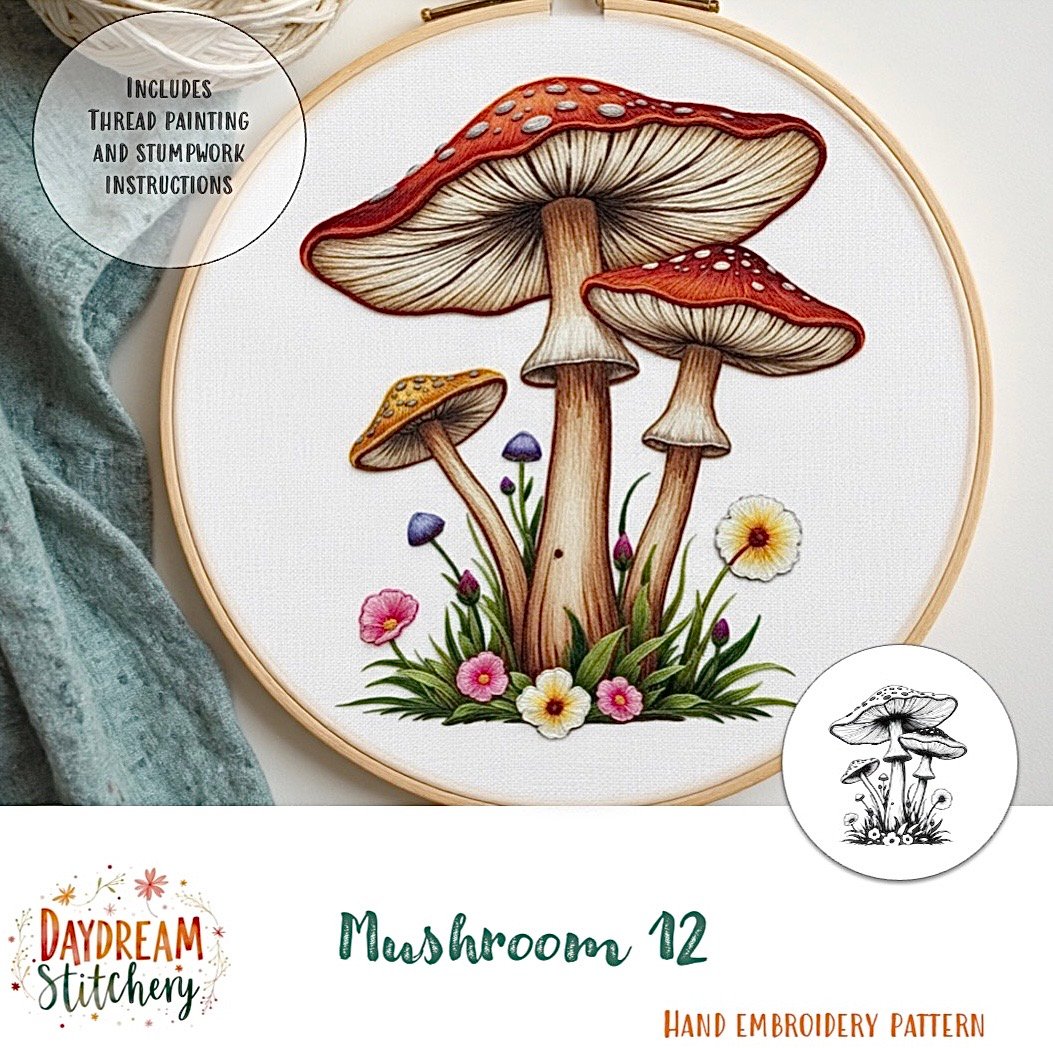 Mushroom 12a: Hand embroidery pattern