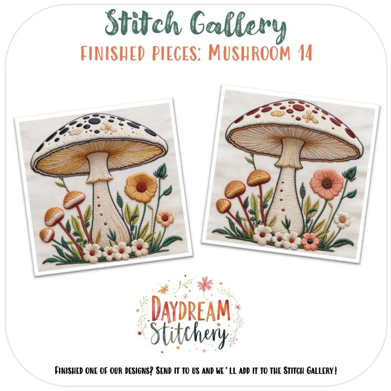 • The design is provided for personal use only and may not be shared, resold, or redistributed in any form. Finished stitched pieces may be sold on a small handmade scale, provided credit is given to Daydream Stitchery. You may resize the design for personal use, but altering the design for resale is not permitted.