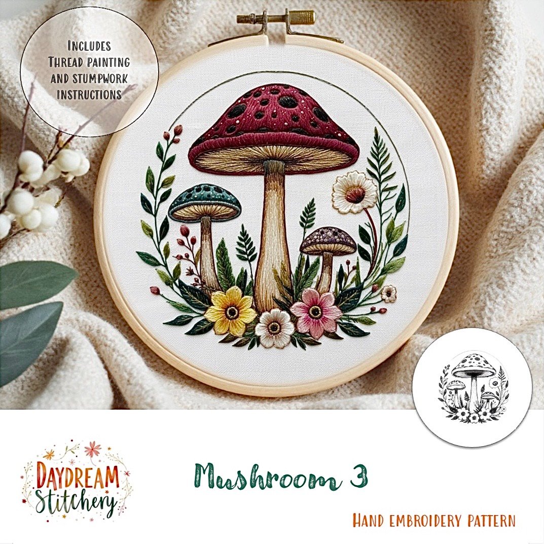 Whether you’re a weekend stitcher or someone who likes to settle in for longer, more detailed sessions, this design invites you into a gentler pace of stitching. If you’re craving a project that feels cosy and creative, these mushroom embroidery designs are an easy way to bring that feeling into your day.