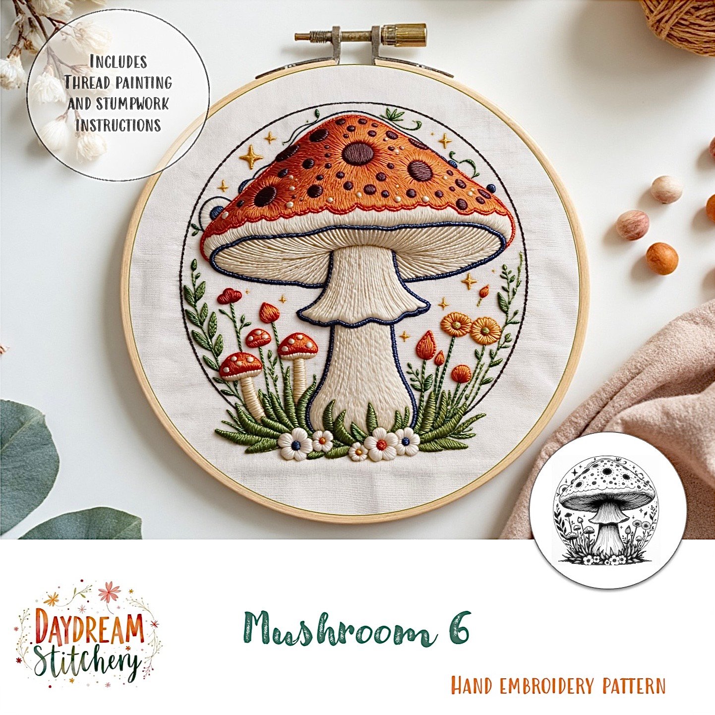 Mushroom Hand Embroidery Pattern: Digital PDF Download