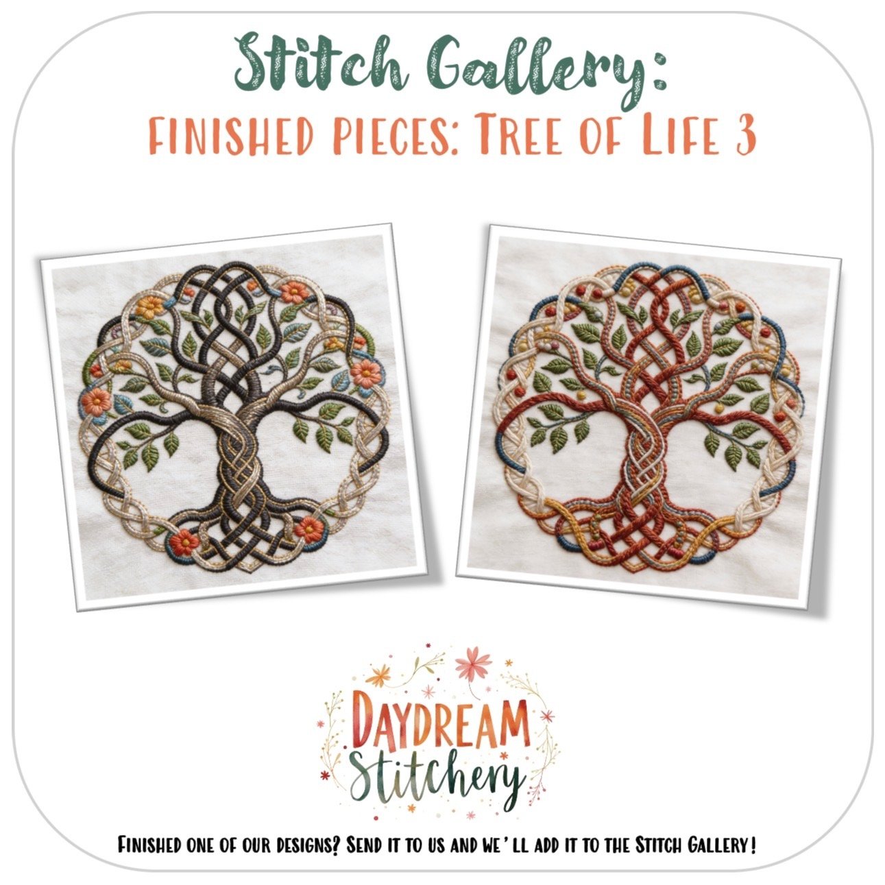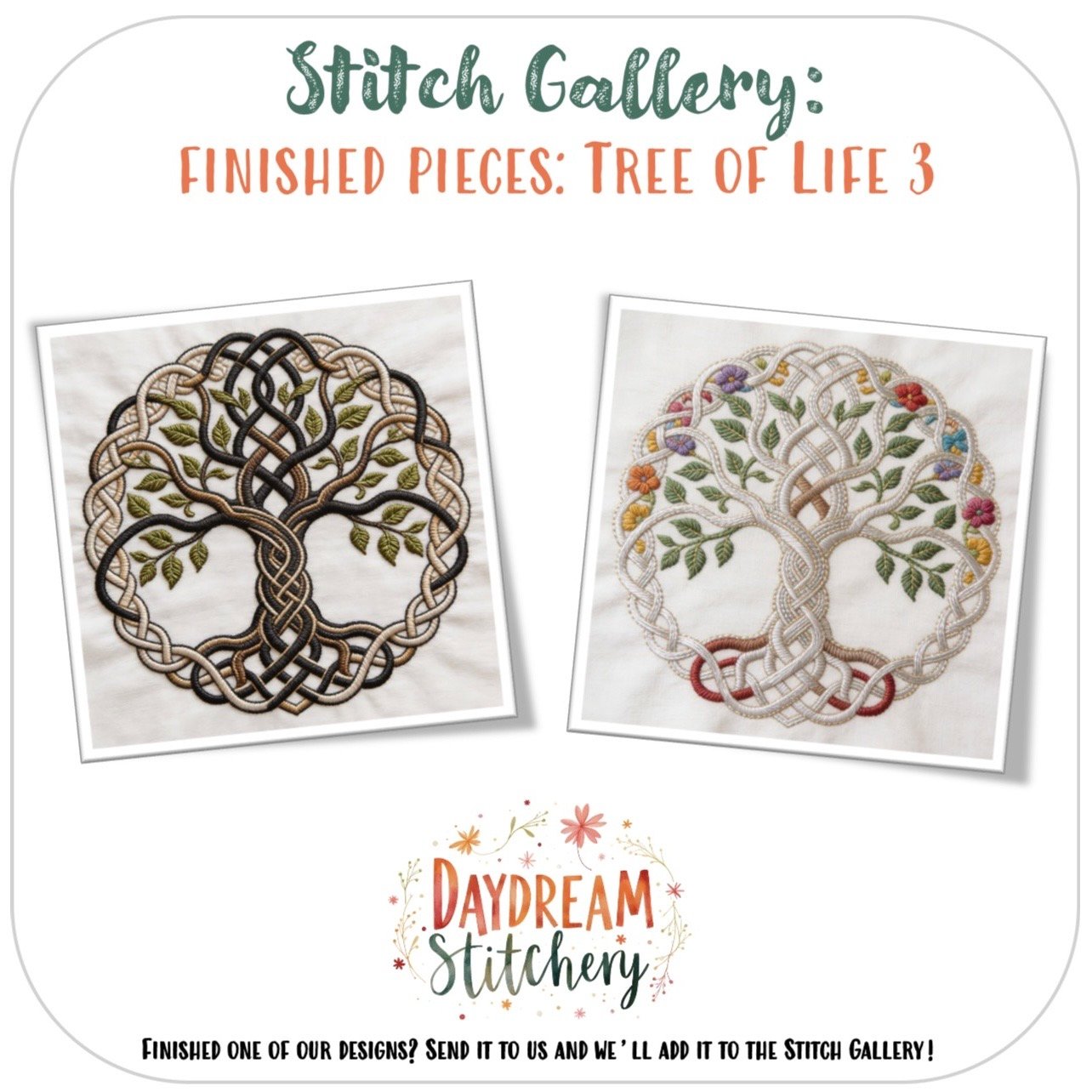 Once finished, a Tree of Life piece becomes more than just embroidery. It’s something you might hang in a sacred space, gift to someone during a meaningful season, or keep nearby as a visual reminder of grounding, growth, and connection. Many stitchers find these designs naturally become slow, intentional projects – ones you return to in small moments, rather than rushing to finish.