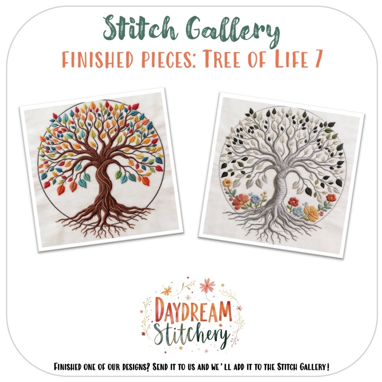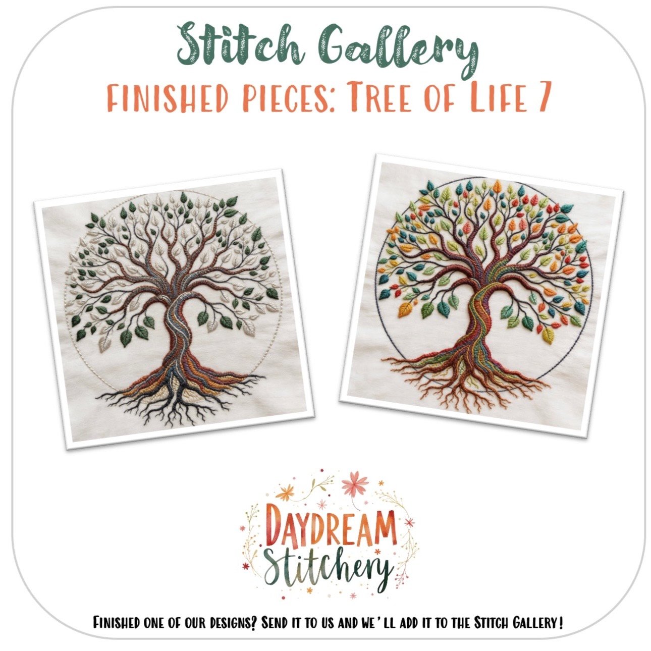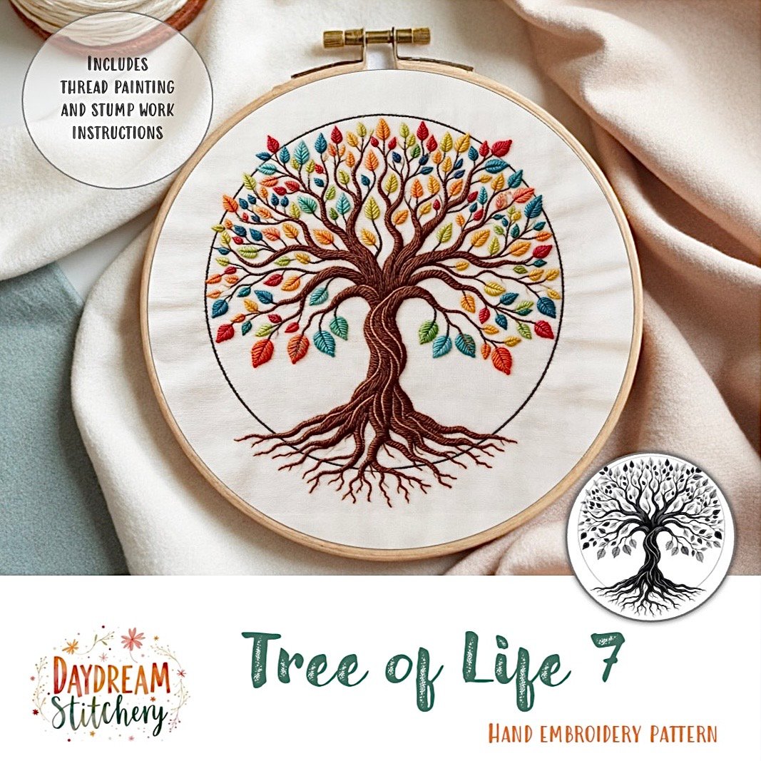 These designs suit a wide range of stitching styles. Keep it simple and meditative with clean lines and earthy tones, or build depth with shading, thread painting, or even padded stitches to give the tree a sense of quiet strength and presence. Whether you’re a confident beginner or an experienced stitcher, the design offers enough structure to feel supported, while still leaving room for personal expression.