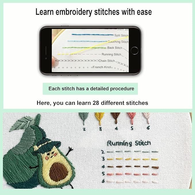 - SUITABLE FOR BEGINNERS: There are 28 different stitches to practice, and each stitch in the kit has been practiced several times, enough for beginners to master the technique.