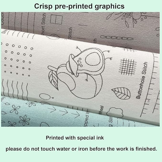 - Kit Includes: 3* Embroidery fabrics with different stitches, 4* Instructions, 9* Embroidery needles, 12* Colorful embroidery threads, 1* Scissors, 1* Thread remover, 1* Needle threader, 1* Cards.