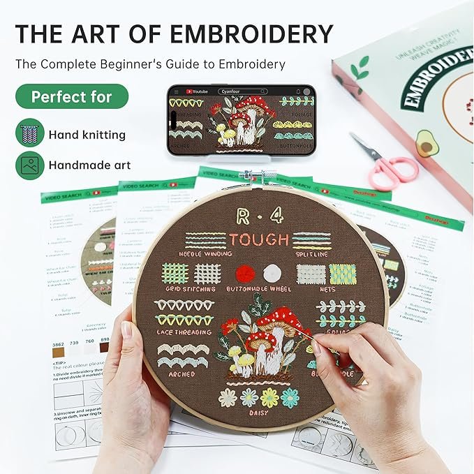 - [ EXCELLENT GIFT FOR HER ] Beneath the stunning gift box lies a world of vibrant embroidery! Our beginner embroidery kit for adults is the perfect gift for kids and women aged 8 and up, suitable for any occasion like birthdays, Valentine’s Day, Easter, Mother’s Day, Thanksgiving, Christmas, and more. Enhance fine needlework skills, unleash creativity, and make lasting memories with family and friends.