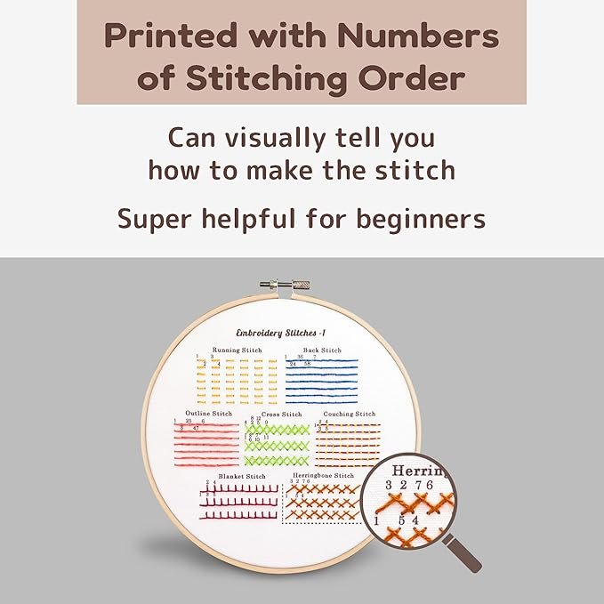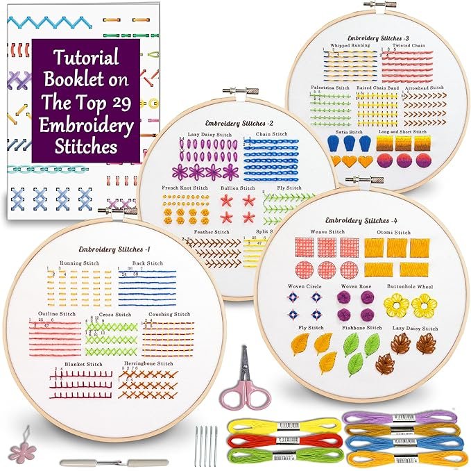 - 【Has All That You Need】Our embroidery starter kit includes everything you need to kickstart your embroidery journey. From high-quality threads to premium fabric, needles, scissor, threader, seam ripper, and embroidery hoop