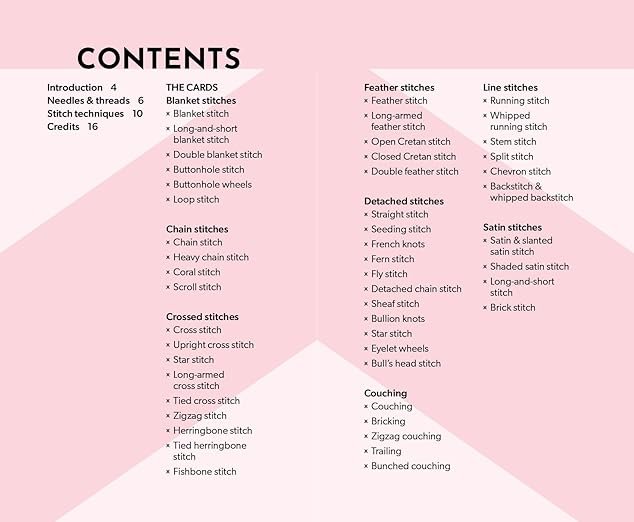 Perfect for on-the-go embroidery and the ideal gift for embroidery fans of all levels. The perfect tool to help you select and create 50 useful embroidery stitches, this innovative card deck of inspiring designs can be easily slipped into your bag for on-the-go stitching.