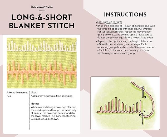 The sturdy box contains a 16-page booklet packed with all the essential embroidery know-how you need to master the art of embroidery. From beginner tips to expert techniques, it’s all there to support your creative journey. Also within are the 50 colourful cards, each showcasing an individual embroidery stitch. On the front of each 140 x 85mm (3.3 x 5.5 inch) card is a colour photograph of the finished stitch, accompanied by suggested uses and alternative names. When you’re ready to dive into the details, simply flip the card over to reveal a clear illustration and step-by-step written instructions for that particular stitch. With an extensive range of 50 stitches at your fingertips, this card deck opens up a world of creative possibilities.